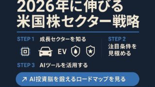 成長株・10倍株研究 【2026年最新版】米国株セクター戦略ロードマップ|AI・EV・エネルギー・防衛で勝つ投資術 2026年のアメリカ株市場は「実装フェーズ」へ。AI・EV・エネルギー・防衛など、成長が続く4大セクターの勝ち筋を徹底解説。AI分析ツールや投資スクール活用でリターンを最大化する方法も紹介。 2025.11.03 成長株・10倍株研究米国株
